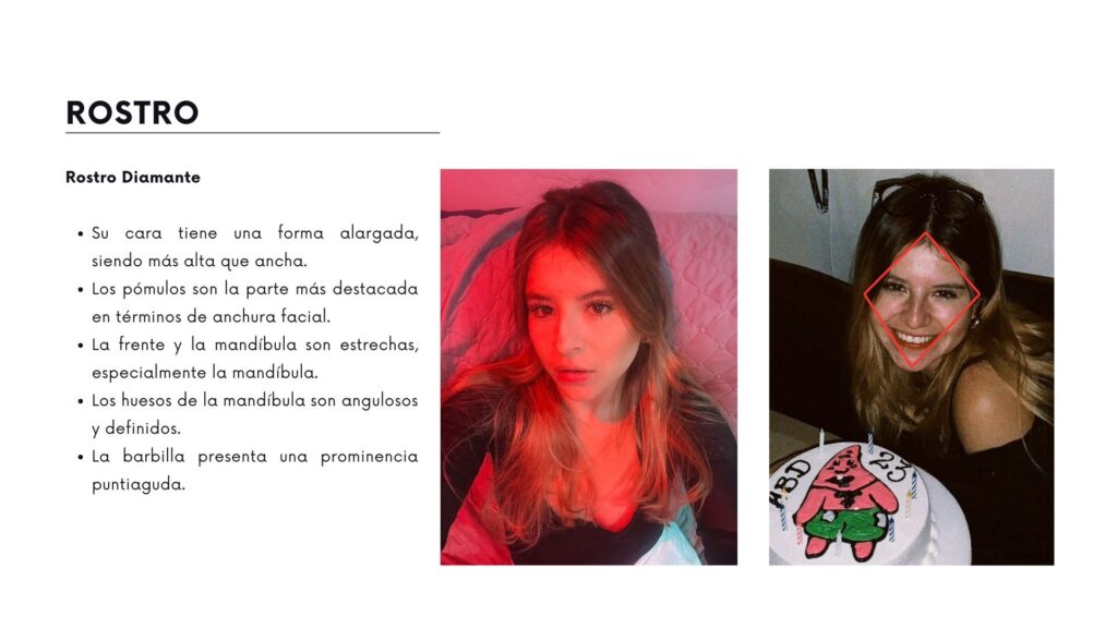 La idea es hacer un análisis detallado de quién es Andrea, sus rutinas, gustos y preferencias, sus entornos sociales y laborales, y su proyección personal y profesional. Luego, realizaremos un análisis corporal: su tipología de cuerpo, su tipología de rostro, análisis de rasgos, su metabolismo corporal, rutinas de cuidado corporal, hábitos de alimentación y ejercicio, para poder dar una retroalimentación y comenzar a construir juntas.