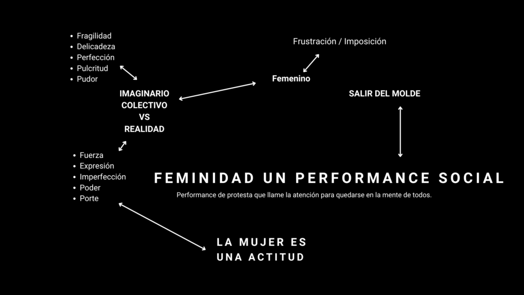 Una colección que permite una voz de protesta, ante una feminidad impuesta socialmente, expresada de manera creativa por medio de un performance.
